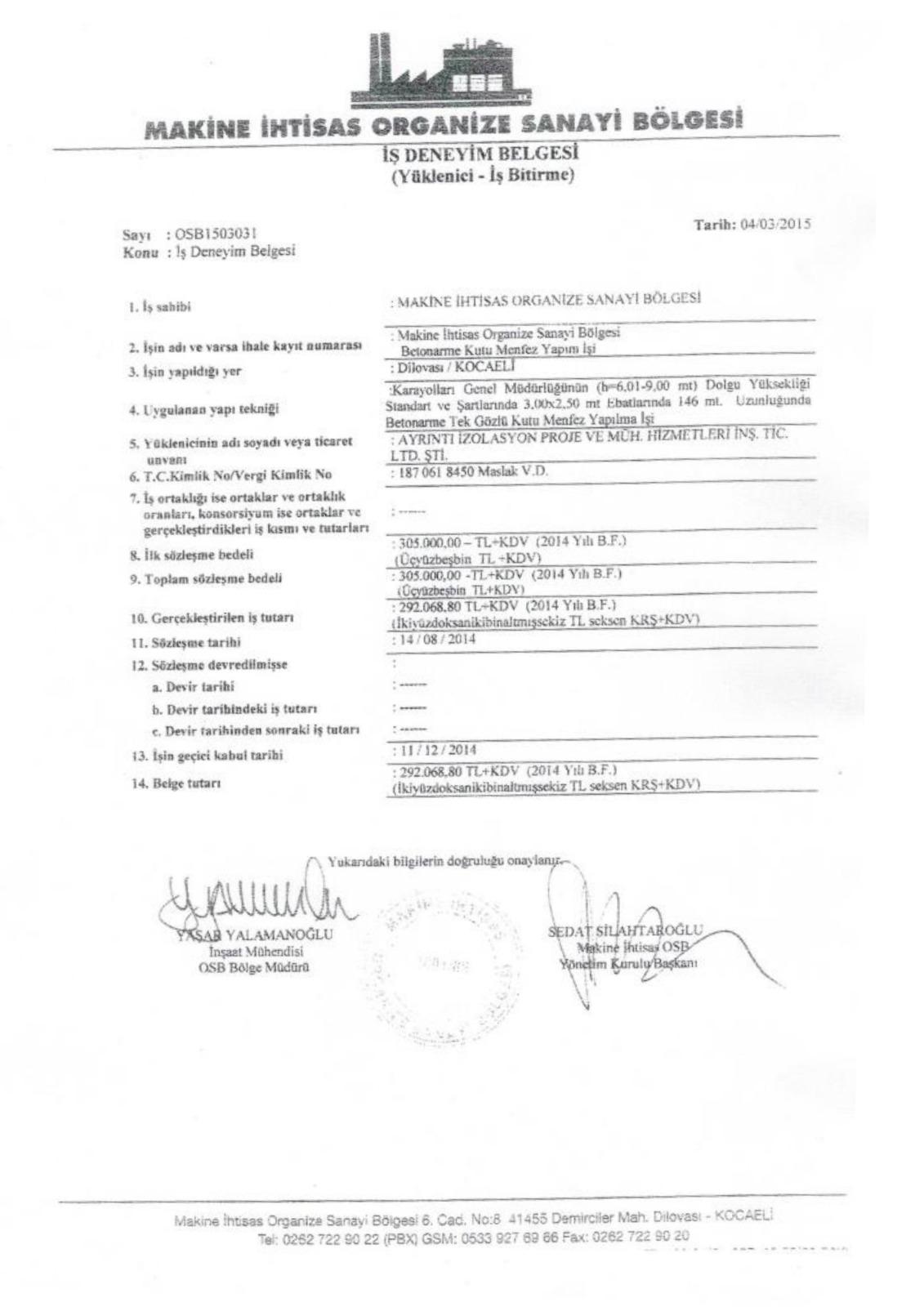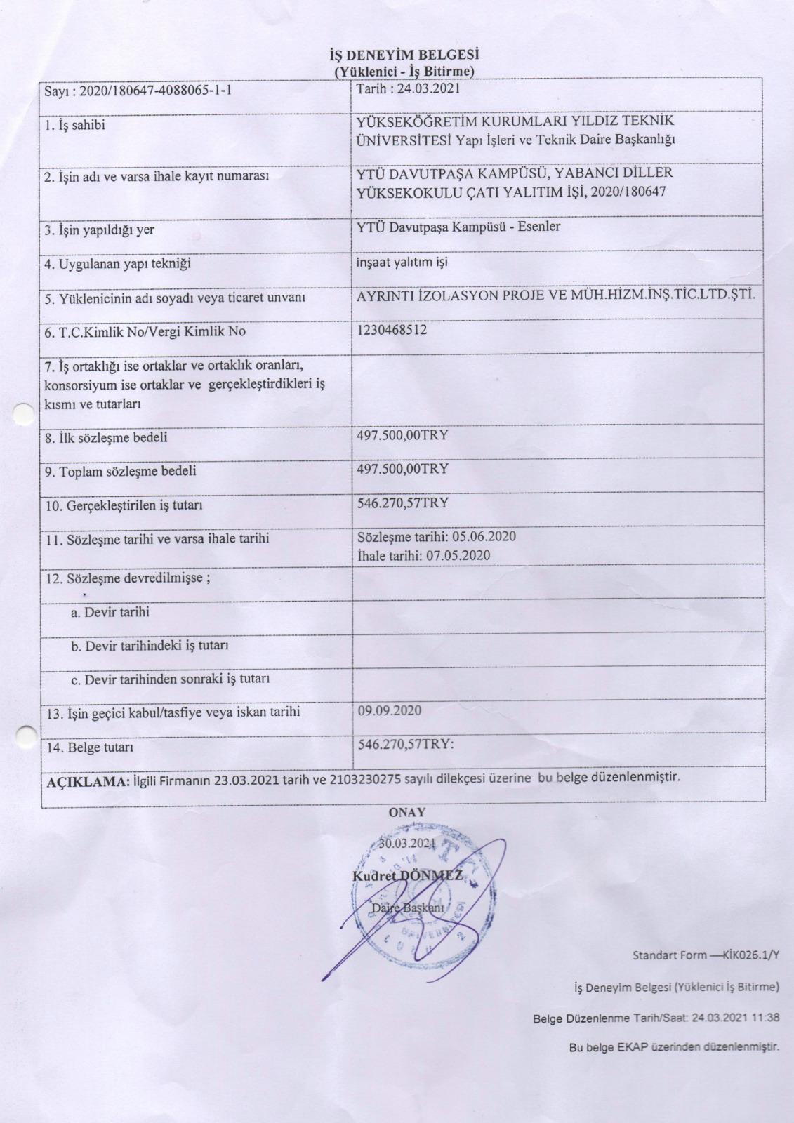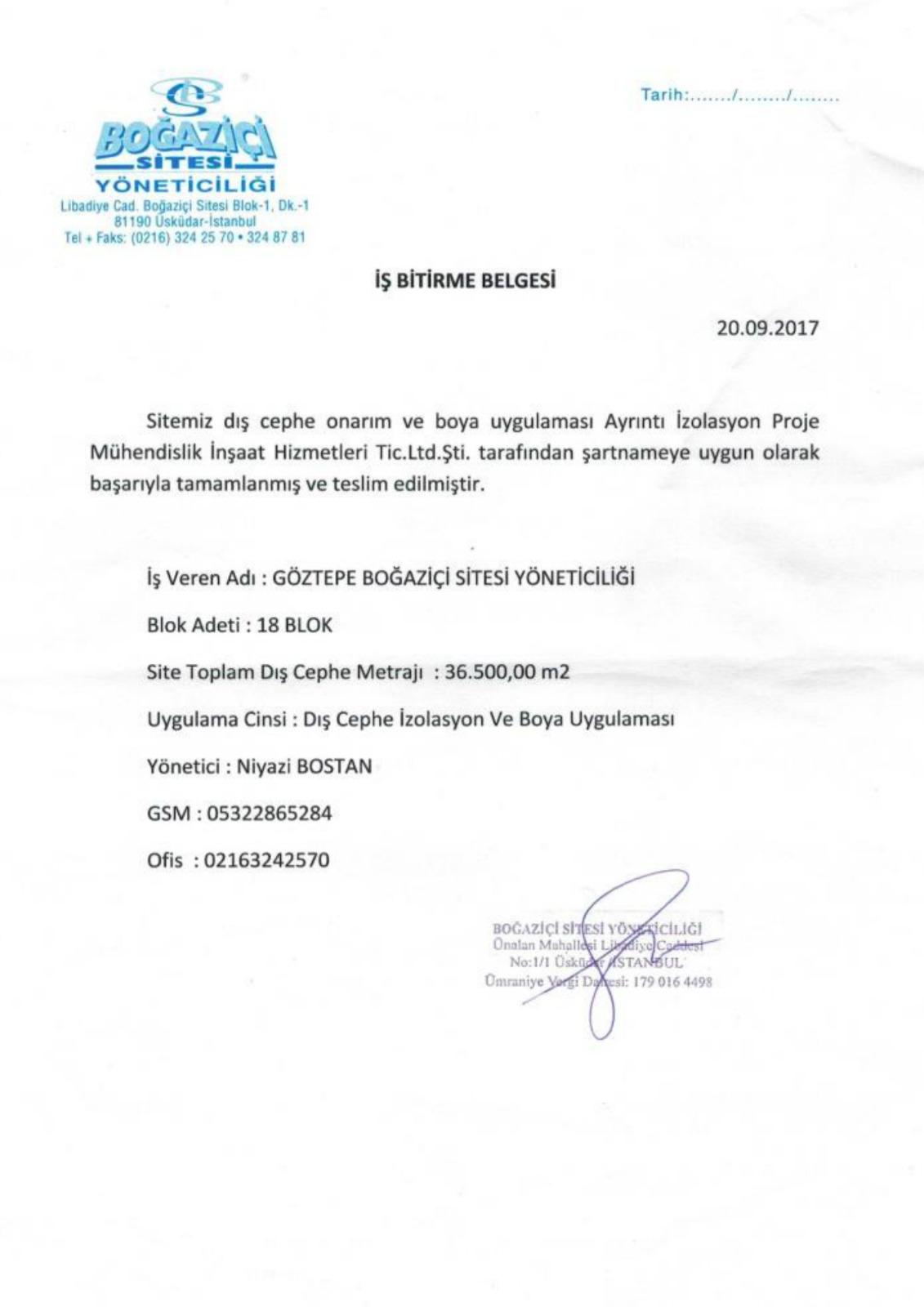 İş Bitirme Belgeleri